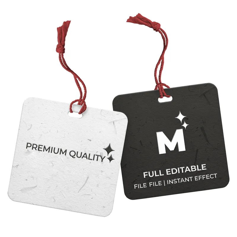 It is used for installing the brand, item code, and clothing prices, and typically, any type of business card can be used to create a clothing label (tag), with no specific standard size, as it is determined by the customer’s preference. It usually includes die-cutting for a unique shape. Generally, clothing labels (tags) also provide instructions for garment care and washing.