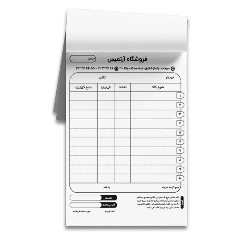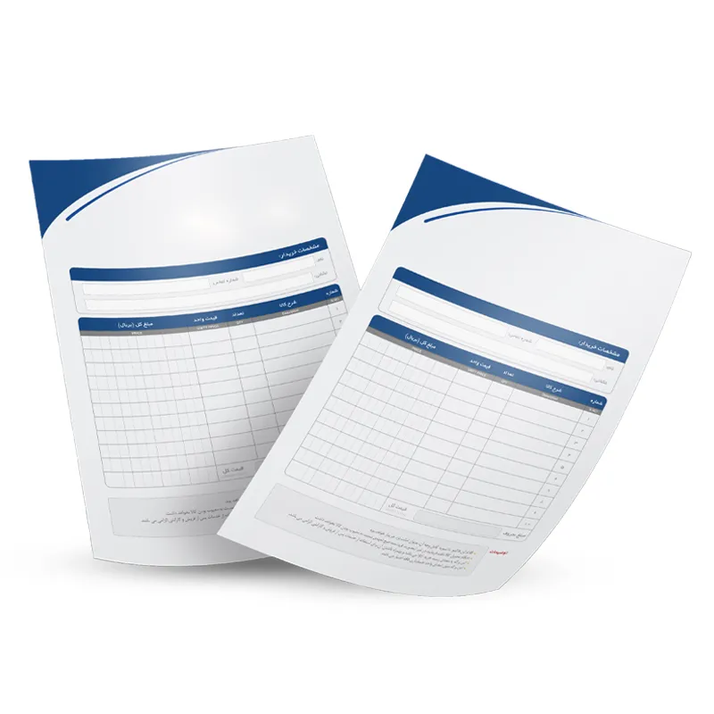 • انتخاب کاغذ: کاغذ فاکتور می‌تواند از نوع کاربن لس یا معمولی باشد.
