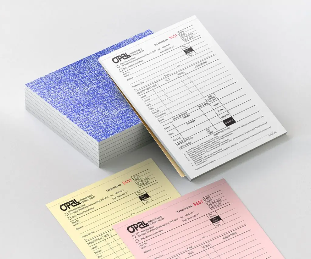 فاکتور های کاربن لس از 2 برگی تا 4 برگی با چاپ 1 رنگ تا 4 رنگ در مجموعه دنیای نو طراحی و چاپ می گردند .