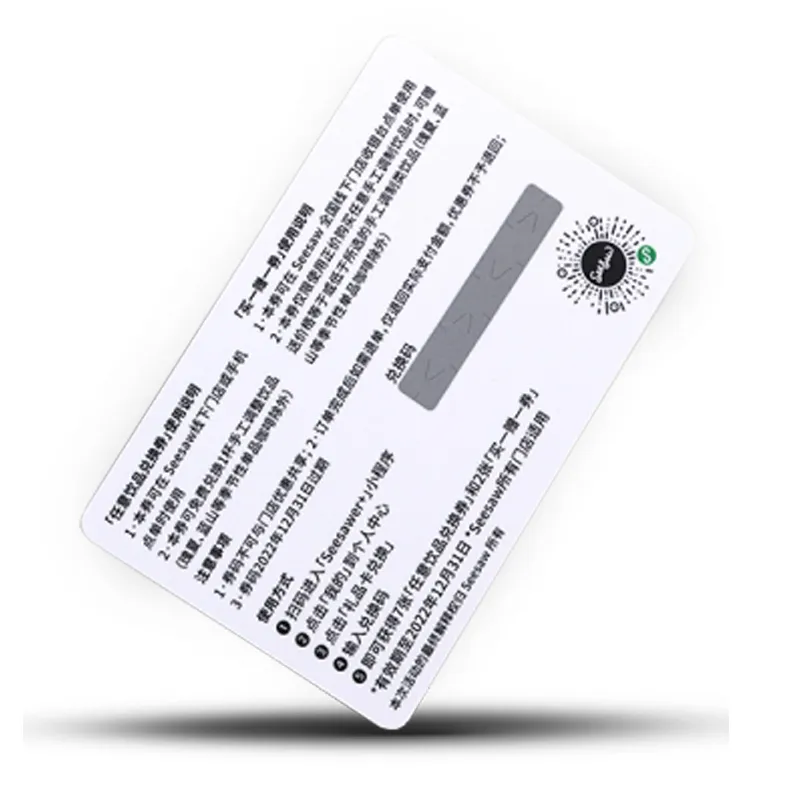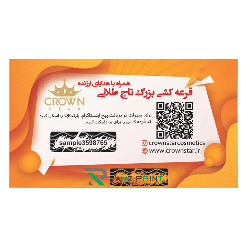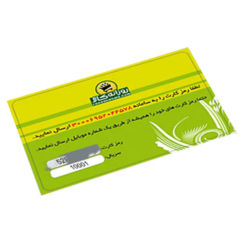 شرکت ها و کارخانه ها جهت ترغيب مشتري به خريد معمولا از کارت قرعه کشي استفاده مي کنند. اين کارت ها مي تواند کارت اينترنت يا کارت قرعه کشي باشد که يک شماره امنيتي تحت عنوان (Pin Code) پين کد يا کد فعالسازي بر روي کارت چاپ مي شود و اين شماره ها توسط يک پوشش امنيتي به نام اسکرچ پوشانده مي شود و سايز اين کارت ها از 10×5 تا 45×35 می باشد که جهت ارائه و ارسال SMS شماره پين (بعد از تراشيدن اسکرچ) براي شرکت در قرعه کشي، عضوگيري و يا استفاده از خدمات جهت جلوگيري از جعل کاربرد دارد. گرماژ مقواي مربوطه از 250 تا 350 گرم بدون UV و يا داراي سلفون مات باشد.